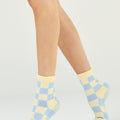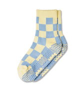 Checkered Crew Pilates Grip Sock - Lemon/Blue